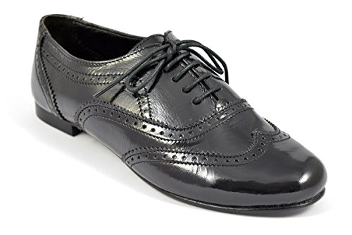 Best Seller! Womens Ladies Black Patent Brogue Shoes Lace-up Formal Casual Style 2016 - UK 5 / US 7 / EU 38 Review